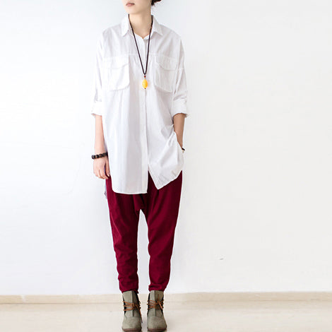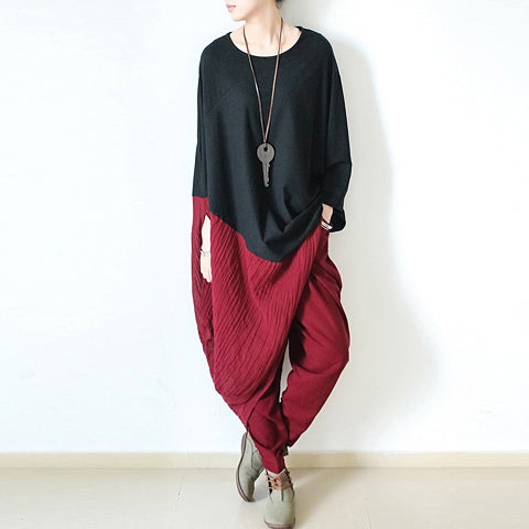2017 fall red linen carrot pants oversized cotton carrot pants plus size outfits