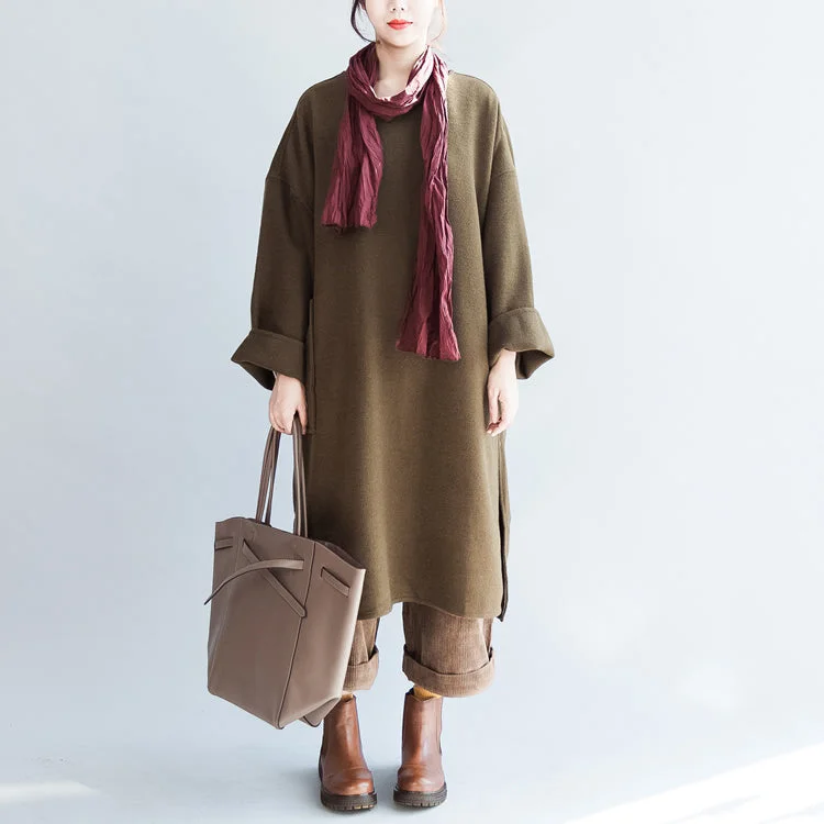 2021 winter olive woolen dresses warm plus size winter dress shift dresses
