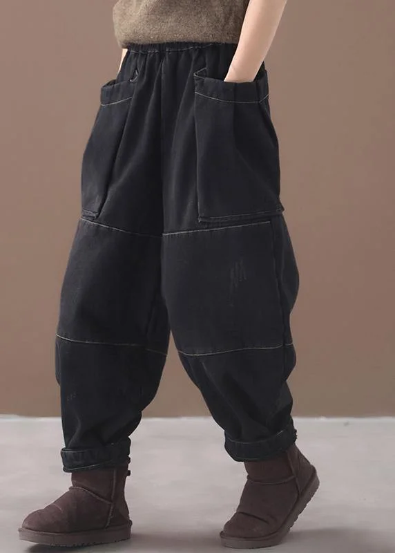 2019 winter black patchwork cotton pants two pockets thick denim pants