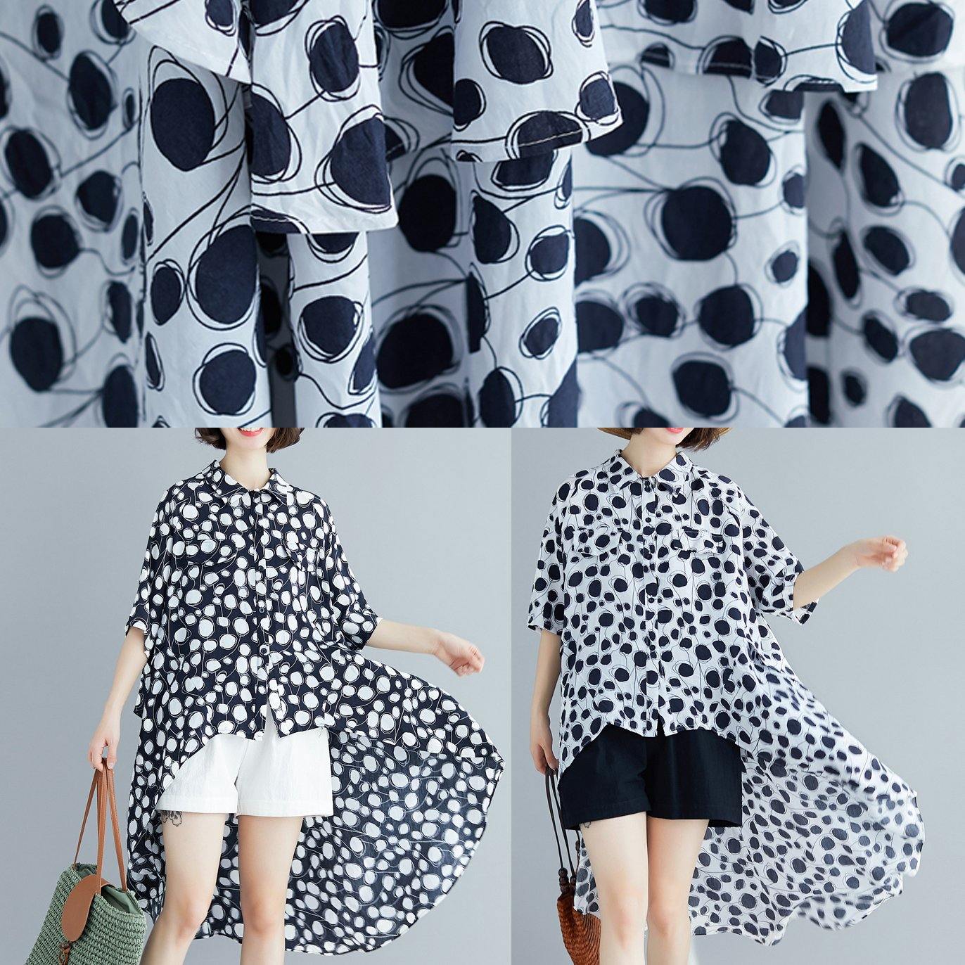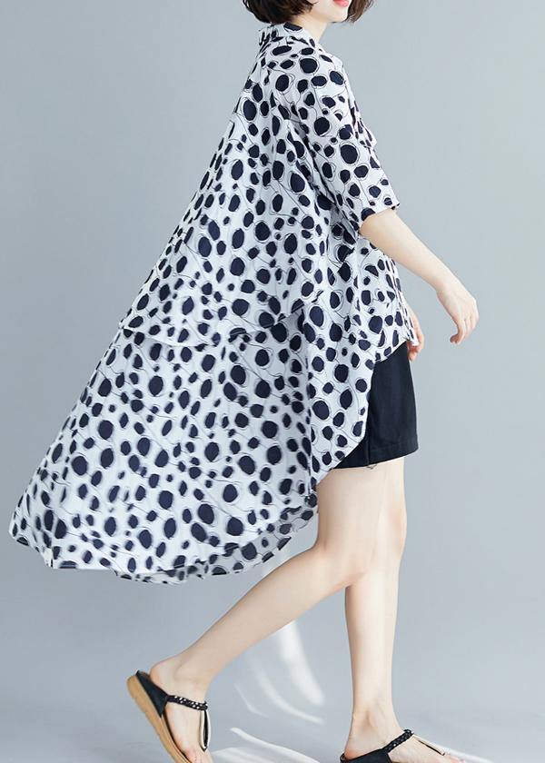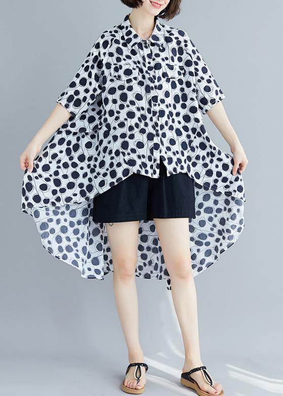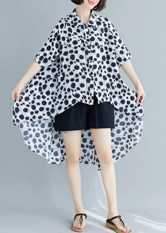 Beach lapel asymmetric chiffon clothes For Women Boho white dotted shirt Summer