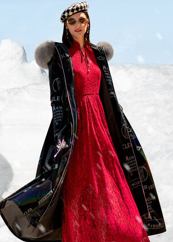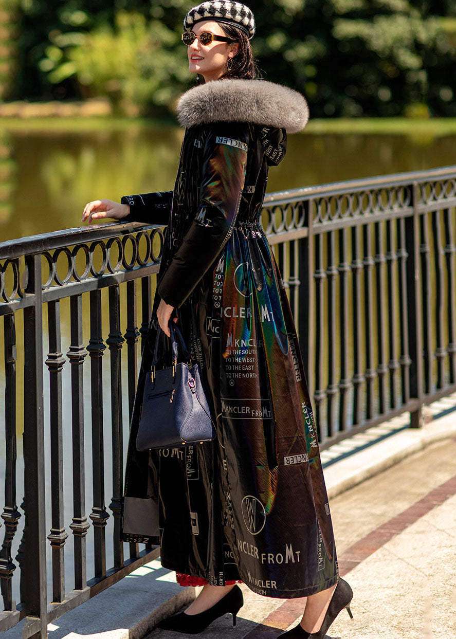 Boho Black Fox collar Drawstring Letter Print Duck Down Puffers Jackets Winter Fabric: 90% Duck Down Size & Fit: Fit: This garment fits true to size. Length: Size XL measures 52.26"from shoulder to hem Bust: Great for any cup size. Waist: Loose Fit. Comfortable room throughout midsection. Hip: Loose Fit - room for hips. Hand Wash Cold.