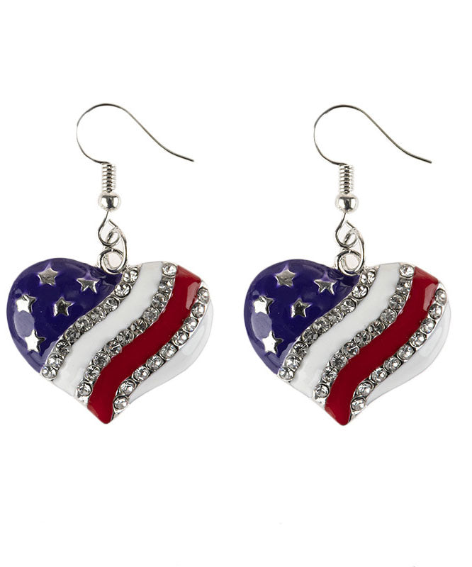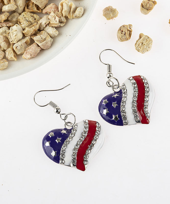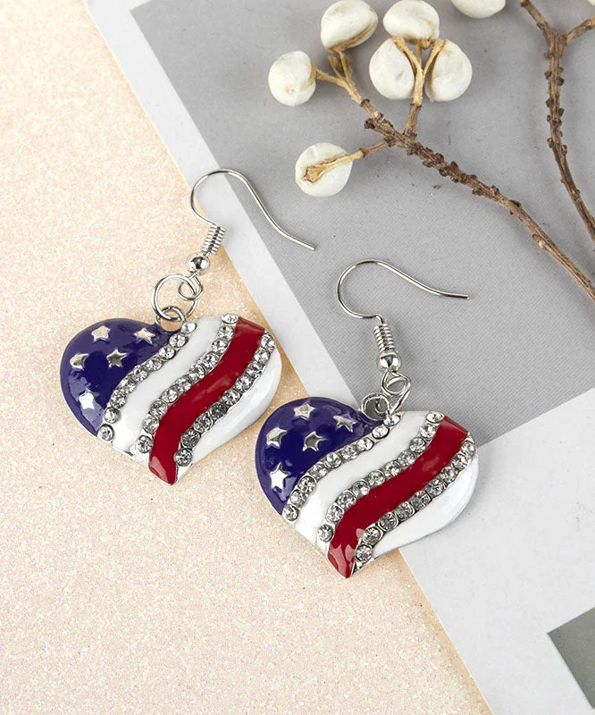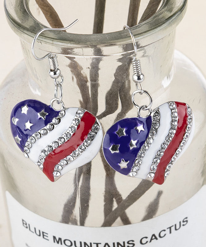 Casual Heart-Shaped Independence Day Theme Print Zircon Earrings Jewelry