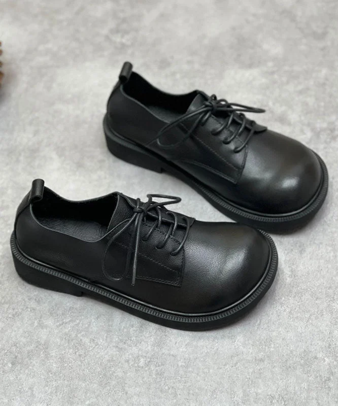 Cowhide Leather Flat Shoes Lace Up Flat Feet Shoes