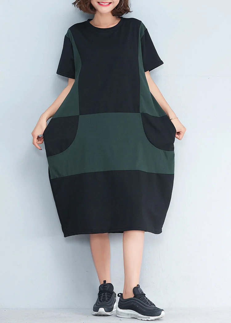 Elegant black Cotton dress Indian Fabrics patchwork Summer Dresses