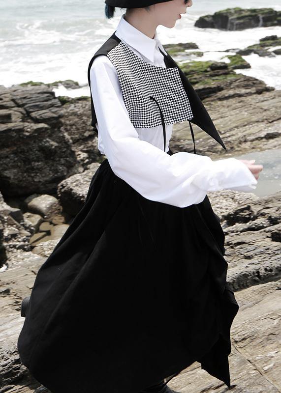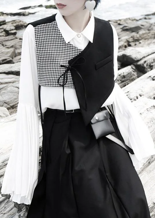 Elegant v neck cotton sleeveless blouses for women Christmas Gifts black patchwork plaid tops