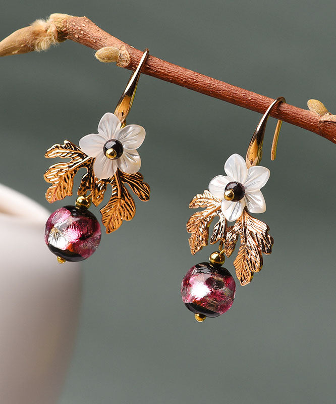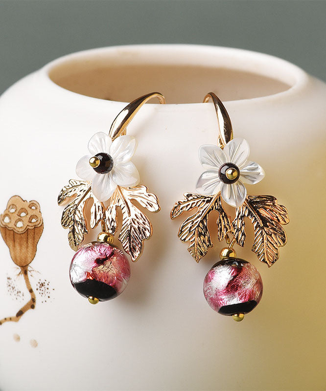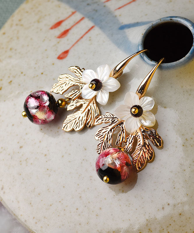 Elegant White Shell Flower Red Coloured Glaze Metal Drop Earrings