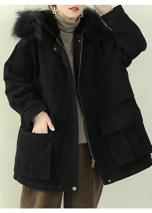 Fine black thick overcoat plus size down jacket faux fur collar winter coats