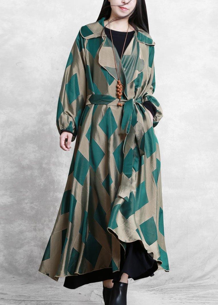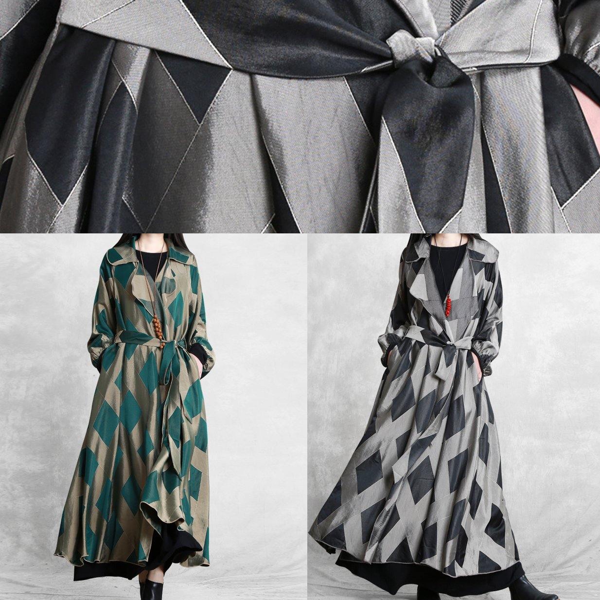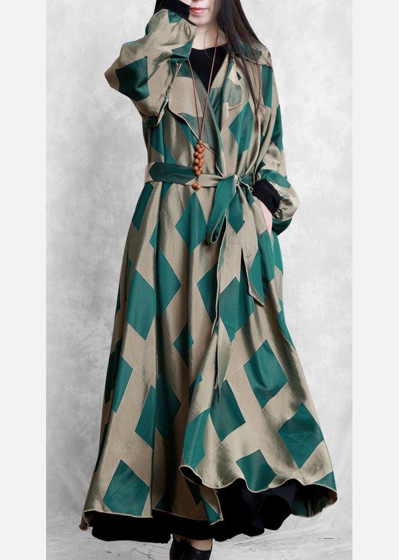French green plaid top quality clothes For Women Work Outfits Notched tie waist coat