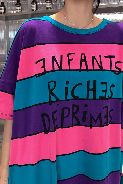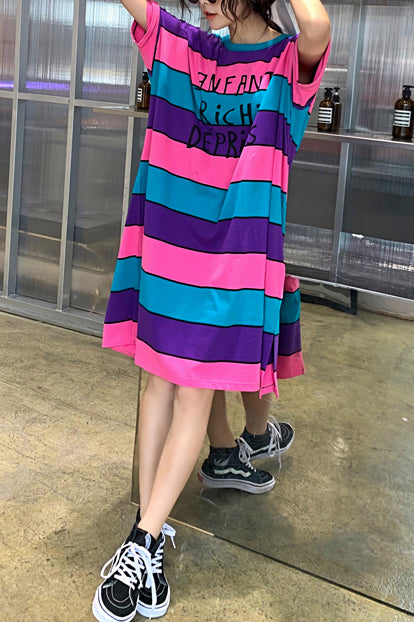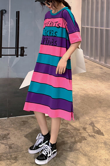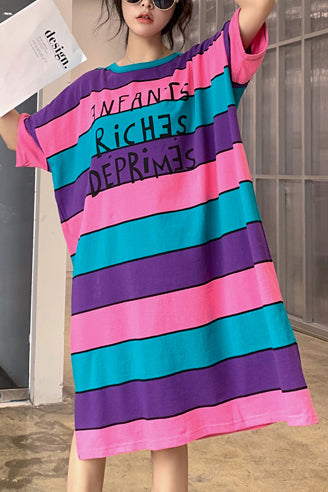 French multicolor Cotton quilting dresses plus size Neckline o neck side open shift summer Dress