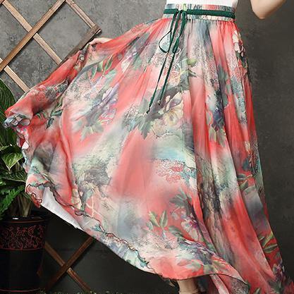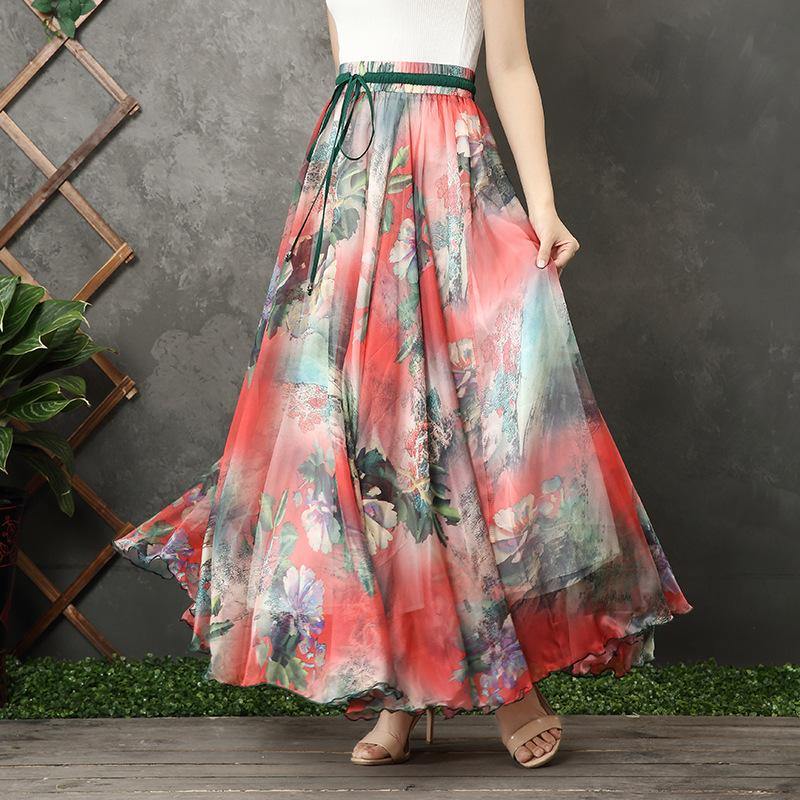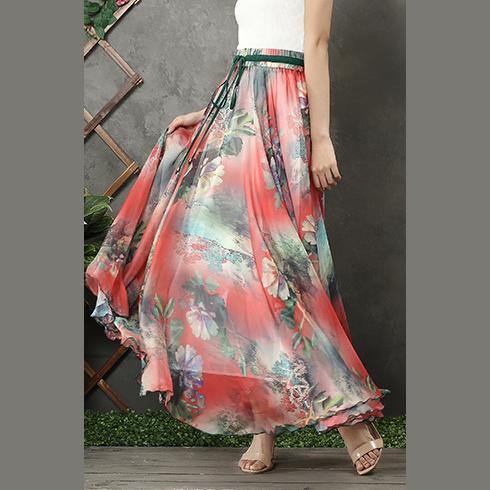 Handmade elastic tie waist chiffon tunic pattern Work Outfits red prints Plus Size Dresses summer