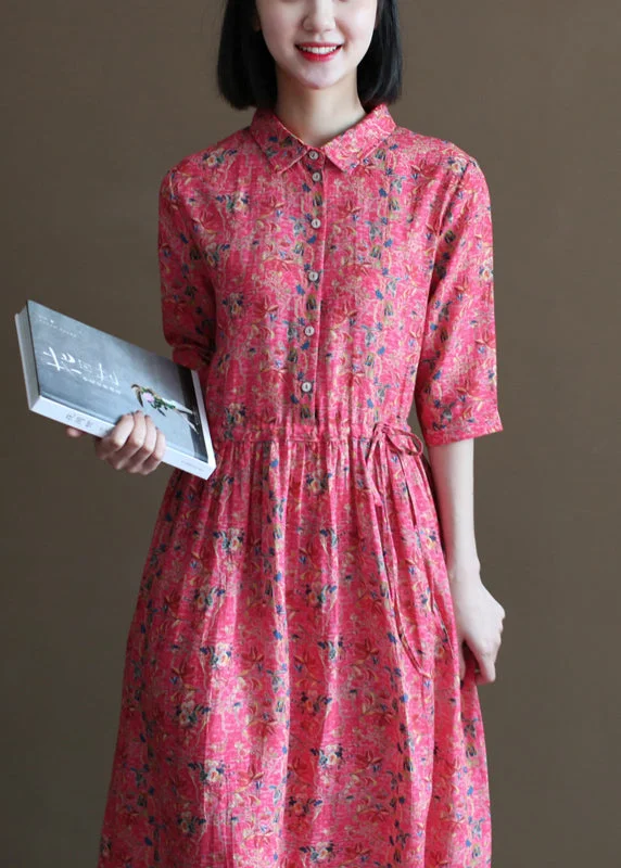 Handmade Red Drawstring Peter Pan Collar Print Linen Shirt Dress Half Sleeve Fabric: Linen Size & Fit: Fit: This garment fits true to size. Length: Size S measures 42.9"from shoulder to hem Bust: Great for any cup size. Waist: Loose Fit. Comfortable room throughout midsection. Hip: Loose Fit - room for hips. Hand Wash Cold.
