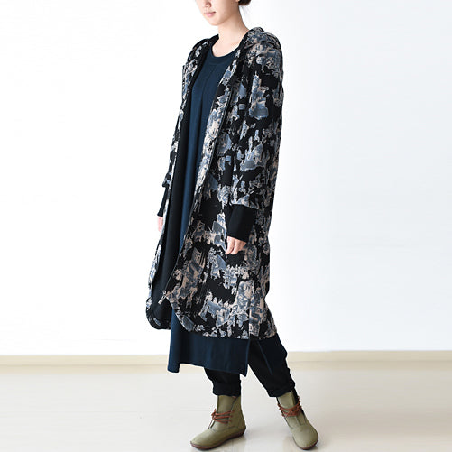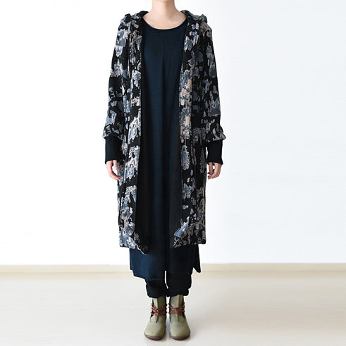 Luxury black blue prints Jackets & Coats oversize zippered trench coat 2021 hooded Jackets & Coats