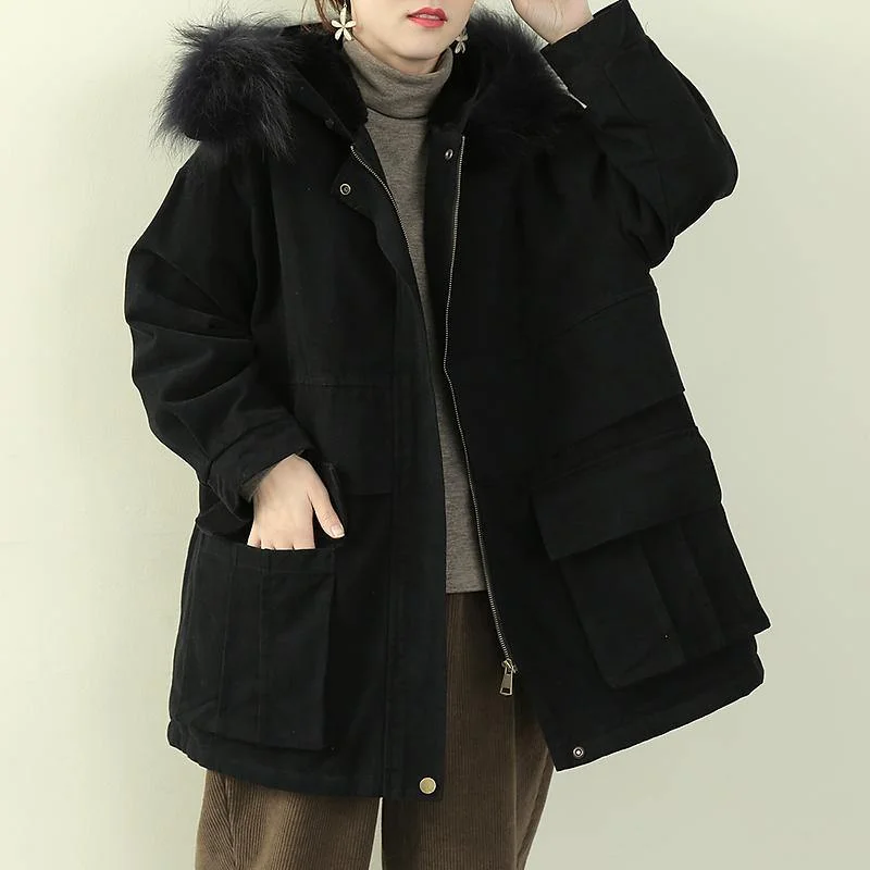 Luxury black winter coats plus size clothing hooded faux fur collar overcoat