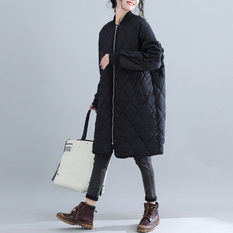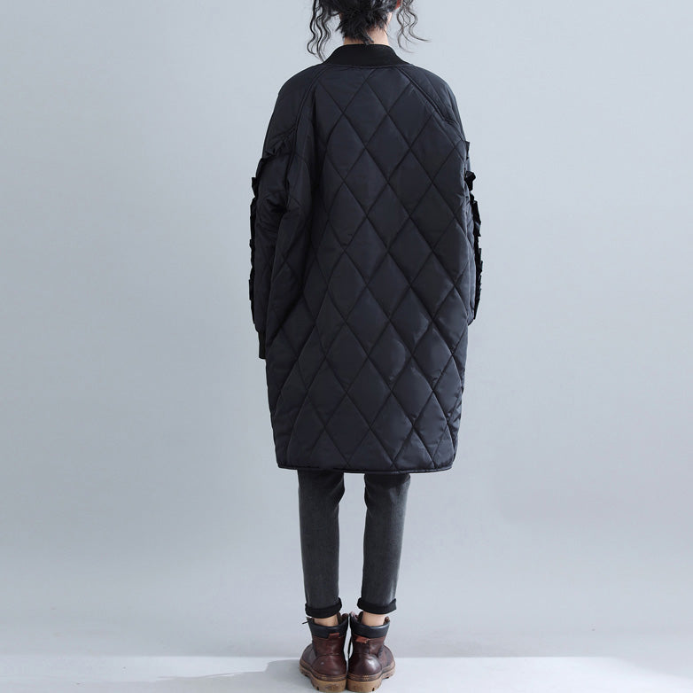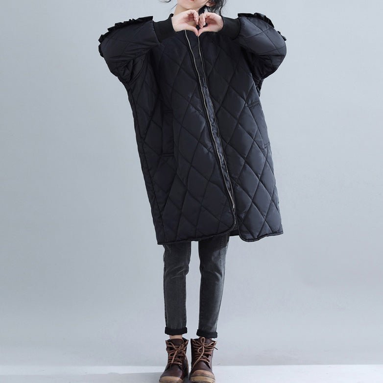 New black women parka plus size clothing stand collar Jackets & Coats women ruffles outwear