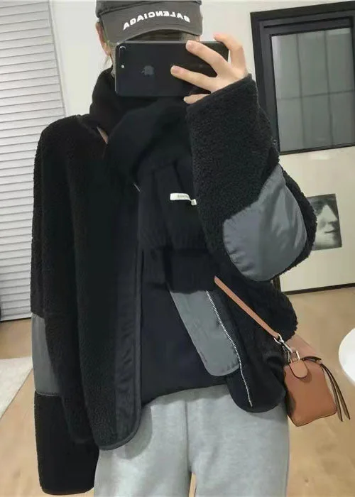 Plus Size Black Pockets Patchwork Faux Fur coats Spring Fabric: Faux Fur Size & Fit: Fit: This garment fits true to size. Length: Size 5XL measures 23.79"from shoulder to hem Bust: Great for any cup size. Waist: Loose Fit. Comfortable room throughout midsection. Hip: Loose Fit - room for hips. Hand Wash Cold.