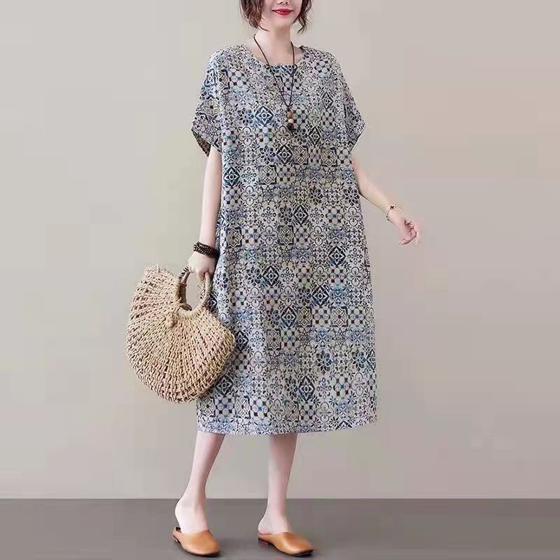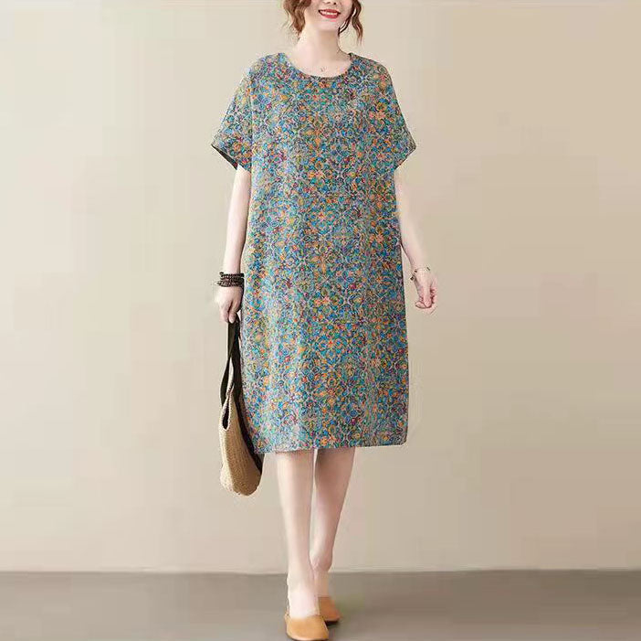 This dress is made of cotton or linen fabric, soft and breathy.