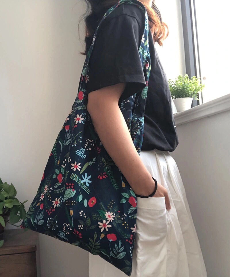 Simple Navy Print Lazy Cotton Satchel Handbag