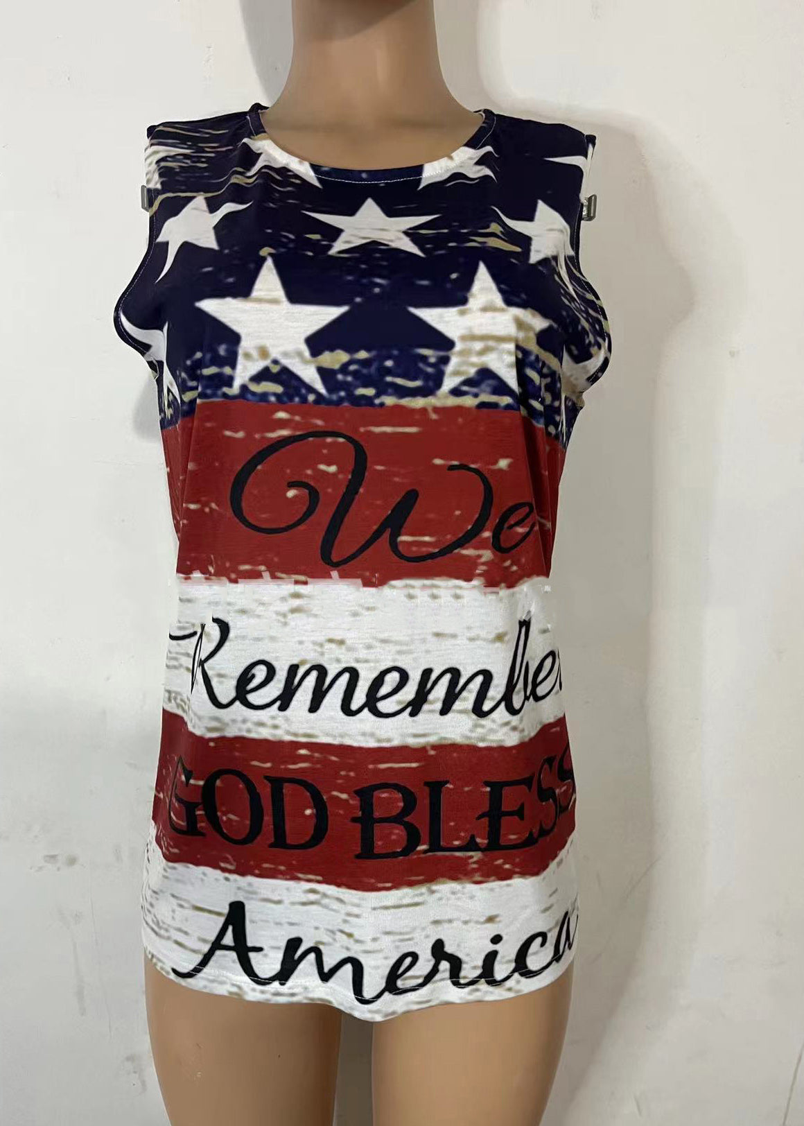 Stylish Blue Red Independence Day Theme Print Cotton Tank Top Summer Fabric: Cotton Blended Size & Fit: Fit: This garment fits true to size. Length: Size M measures 26.91"from shoulder to hem Bust: Great for any cup size. Waist: Loose Fit. Comfortable room throughout midsection. Hip: Loose Fit - room for hips. Hand Wash Cold.