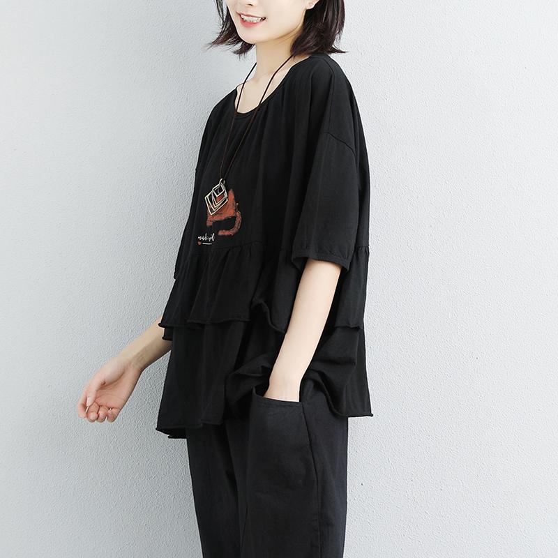 stylish natural cotton t shirt Loose fitting Loose Women Cotton Round Neck Printed White Tops