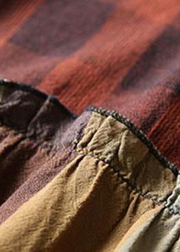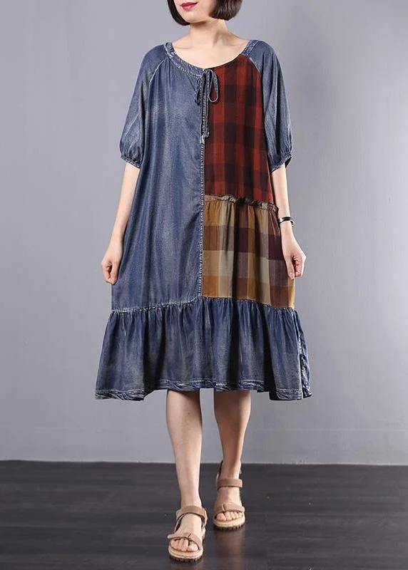 Women Cotton Tunics Indian Vintage Plaid Spliced Denim A-Line Dress