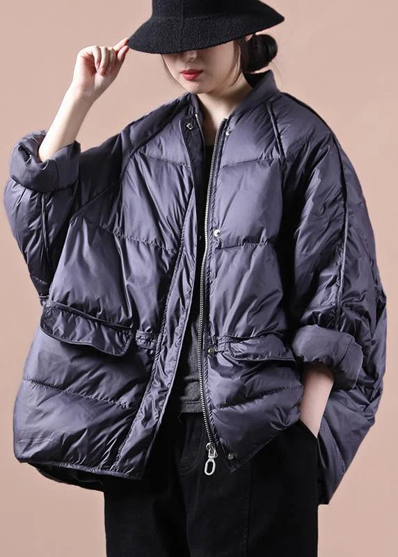 women plus size parka coats purple gray pockets zippered warm winter coat
